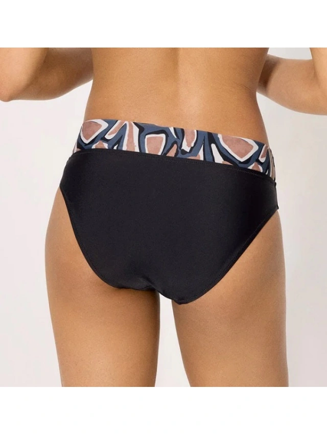 -Braga de bikini de color negro con cinturilla estampada de altura adaptable.