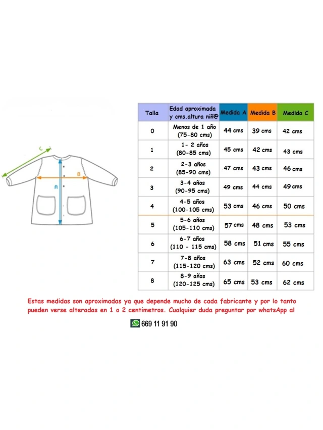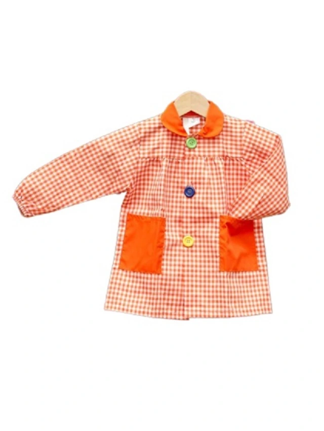 - Con botones grandes para facilitar el aprendizaje del abotonado. Dos bolsillos frontales y asa en el cuello para colgar en el perchero.