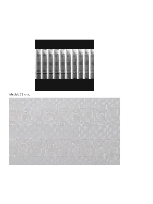 - Esta cinta suele utilizarse como base para cortinas que van sobre riel y que precisen de ganchos pequeños para su sujección.