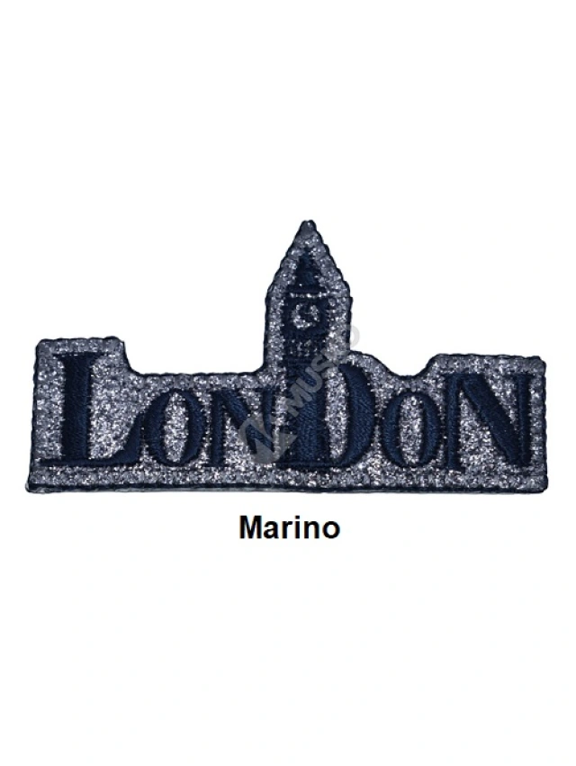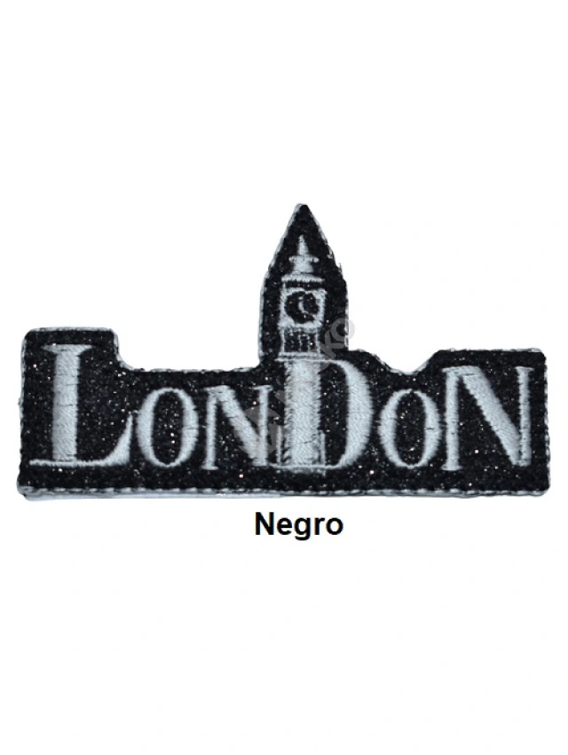 - Aplicaciones termoadhesivas con diseño London con purpurina.