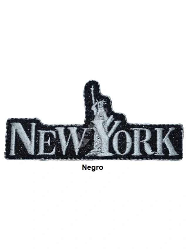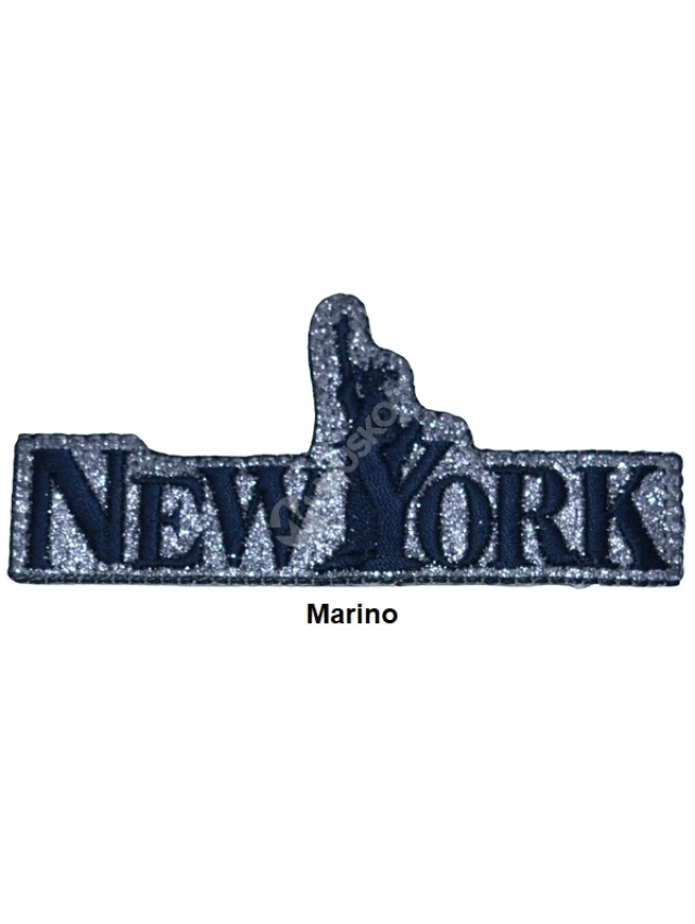 - Aplicaciones termoadhesivas con diseño New York con purpurina.