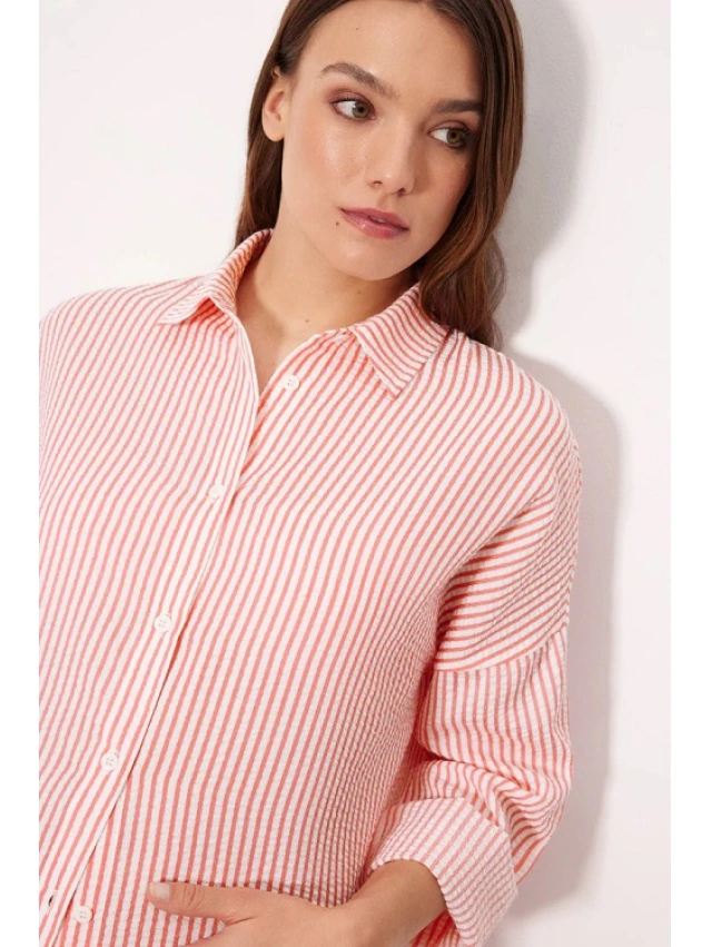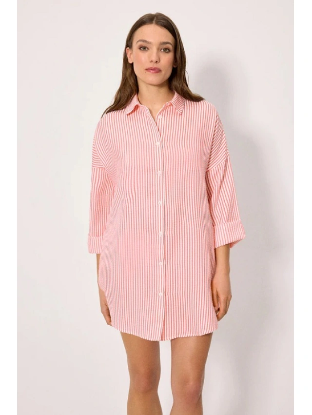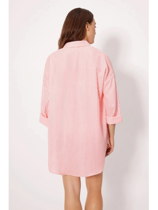 -Camisa extra larga de verano a rayas rosa para ir a la playa o piscina.