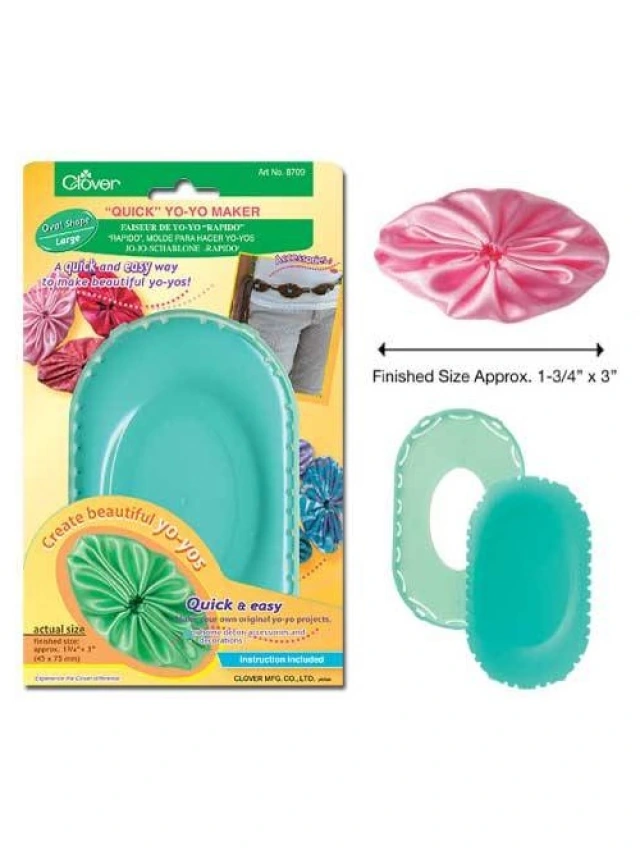 - Esta ingeniosa máquina para hacer yo-yos de Clover ofrece una forma rápida y sencilla de crear yo-yos de tela con formas ovaladas.