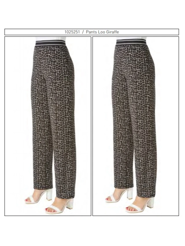- Pants anchos y sueltos en tejido de Poliester y elastano con veraniego estampado animal print sobre fondo negro, muy cómodos y frescos.