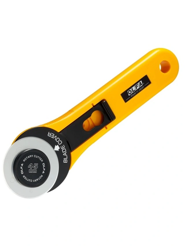 - El cortador rotativo OLFA de 45 mm es una herramienta esencial para aficionados y profesionales de la costura, patchwork y manualidades que buscan cortes precisos y eficientes en sus proyectos.