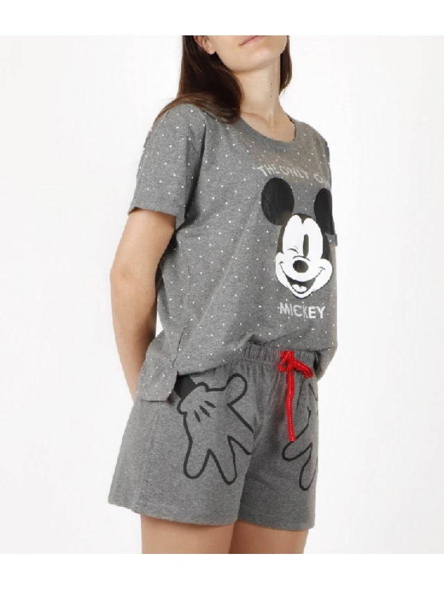 - Pijama de punto de algodón, de manga corta, cuello redondo y pantalón corto