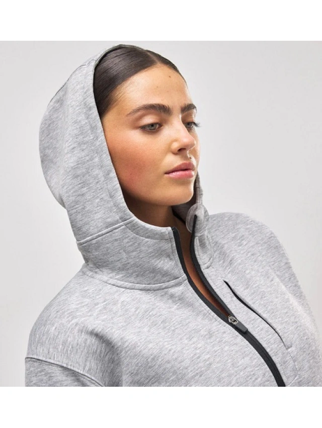 Hecha con un tejido suave y de alta calidad, esta chaqueta es la opción ideal para mantenerte cómoda y abrigada después de hacer deporte o en tu día a día.