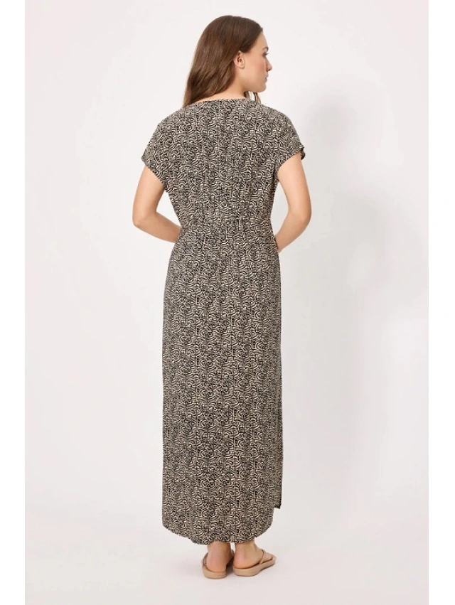 -Vestido largo de manga corta en viscosa, un tejido suave, fresco y ligero, ideal para verano.